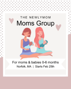 Mom’s Group in Weymouth meets for 4 weeks in February and March! We will be talking about motherhood and babies in a space where no one minds if a baby cries, and you can feed or change your baby while connecting with other moms. Sign up today to find community, support, and friendship with local moms!